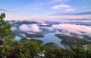 Thien Phuc Duc Hill is a favorite cloud-chasing spot, especially for young travelers. From the hill’s summit, you’ll marvel at the soft cloud valley with the majestic Langbiang mountain appearing in the mist, giving you a unique and peaceful experience.
