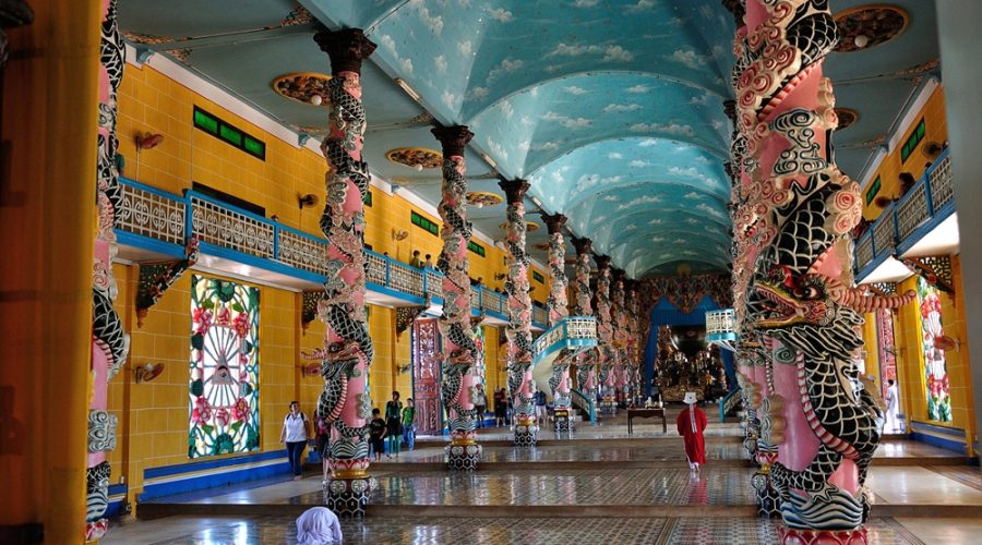 We drive more 40 – 60 minutes to Tay Ninh. Upon arrival, we will walk around the temple to have a look and take photos; after that, we move inside and join the ceremony to get insight and information about this religion.