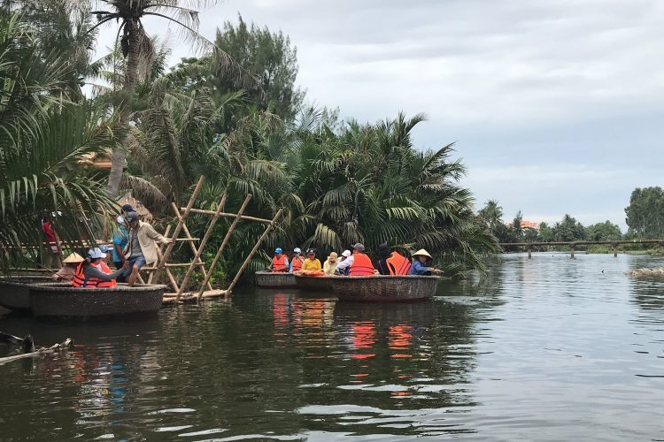 The residents of Cam Thanh Coconut Village engage in various traditional crafts to sustain their livelihoods, including fishing net weaving, basket boat making, coconut handicraft production, palm house construction, and bird nest harvesting.