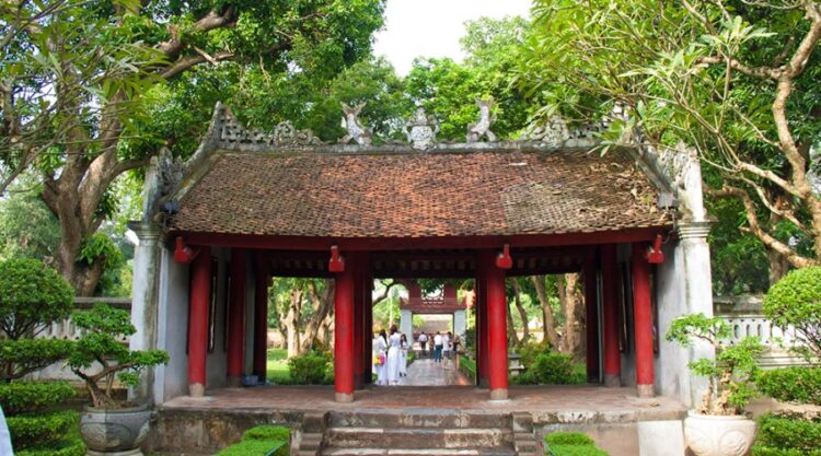 - Around 11:00 AM: Arrive at the Temple of Literature. This is the combination of the Confucius Temple worshiping Confucius which was built in 1070 and the first Royal National university in Vietnam built 6 years later in 1076. Considered as “an escape” from the bustling city, this temple and its beautiful garden provide an opportunity to learn more about education in Vietnam since 1000 years ago until recent history.