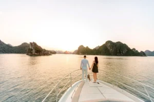 For couples seeking a unique honeymoon experience, Ha Long Bay, one of the New 7 Wonders of the World, is an extraordinary choice. Sailing through the emerald waters surrounded by limestone karsts creates a magical atmosphere for newlyweds. Cruises in Ha Long offer opportunities to enjoy luxury, intimacy, and natural beauty all at once.