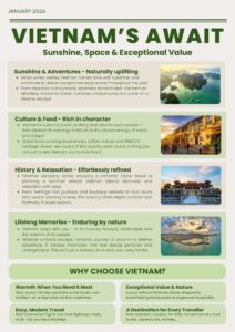 For travel professionals planning Vietnam for 2026, January represents a strategic booking window. As demand for high-quality, well-paced journeys continues to rise, early planning secures the strongest value, availability and flexibility across the year.