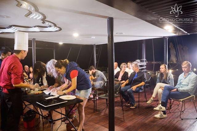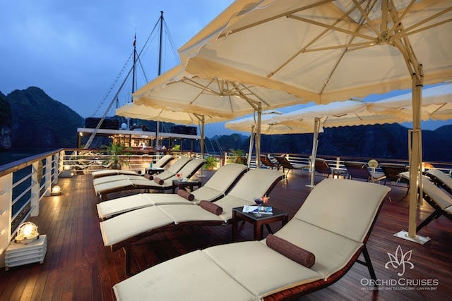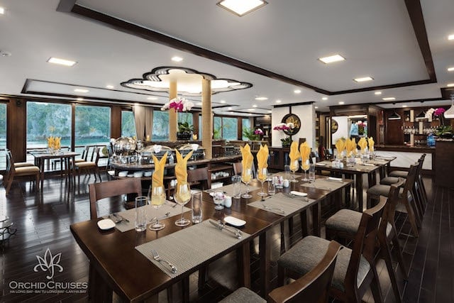 Orchid Classic Cruise, a premier 5-star cruise, blends timeless Indochine design with warm wooden interiors, offering an exceptional exploration of Halong and Lan Ha Bays. Each of its 14 expansive suites features a private balcony, en-suite bathroom with bay views, and access to an outdoor jacuzzi. This cruise guarantees a luxurious and memorable experience, showcasing the bays’ enchanting beauty.