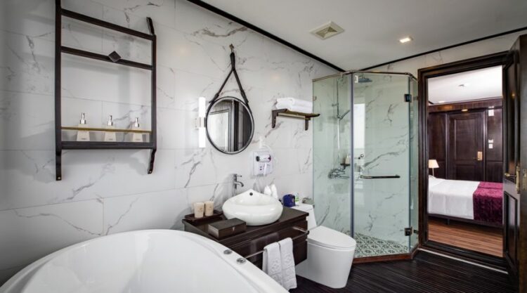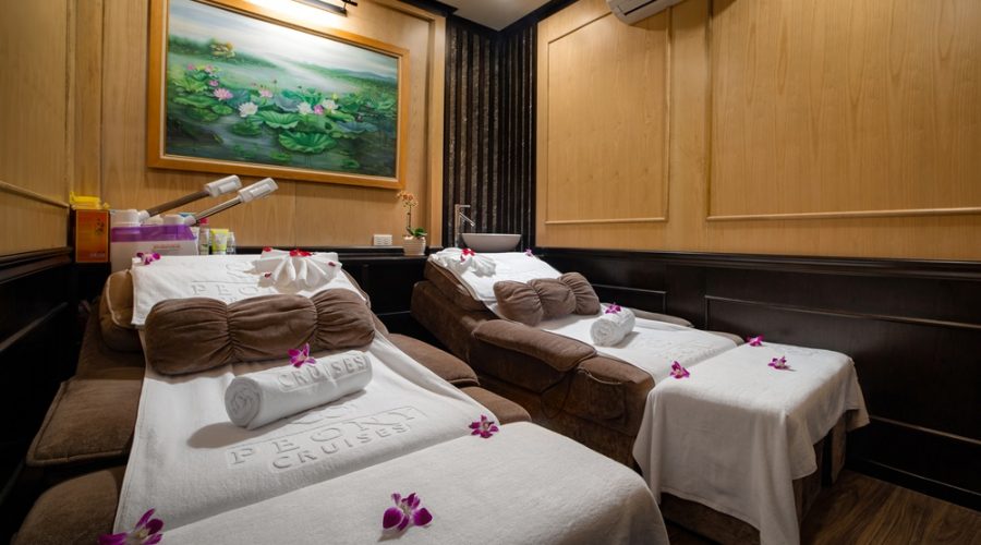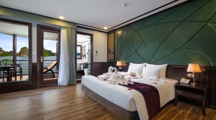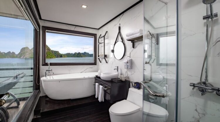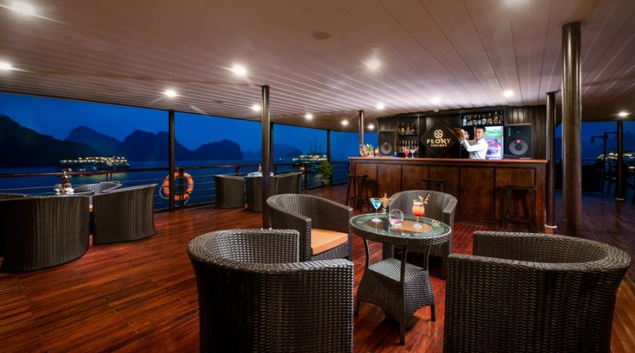 On Peony Cruises, you can select between direct immersion in Lan Ha Bay’s emerald waters or relaxation within the ship’s Jacuzzi pool, both set against the bay’s scenic backdrop.